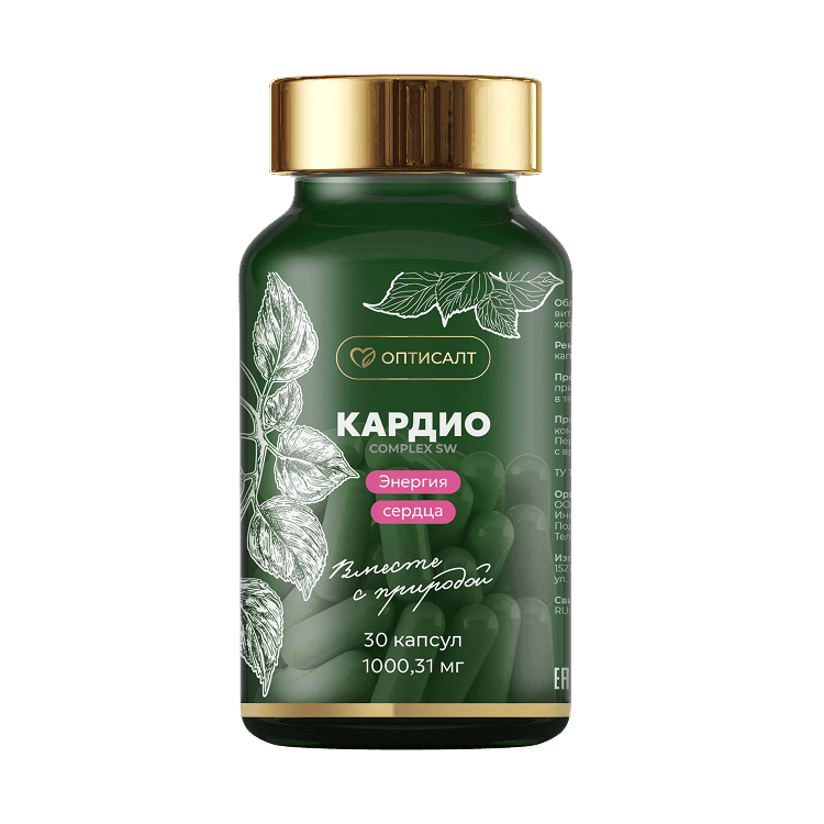 Кардио (2 уп) - способствует нормализации сердечного ритма, снижению повышенного артериального давления, а также влияет на уровень холестерина различной плотности и триглицеридов в крови. Является дополнительным источником энергии для сердечной мышцы