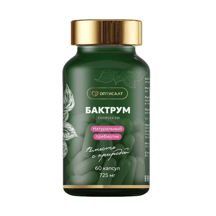 Бактрум – натуральный биосорбент, способствующий удалению токсинов и усвоению микроэлементов и витаминов. Основной компонент – инулин, который способен улучшать обмен сахара и холестерина