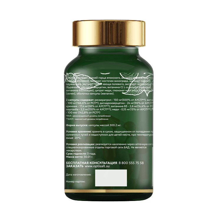 ресвератрол - 150 мг(500% от АУСП**)