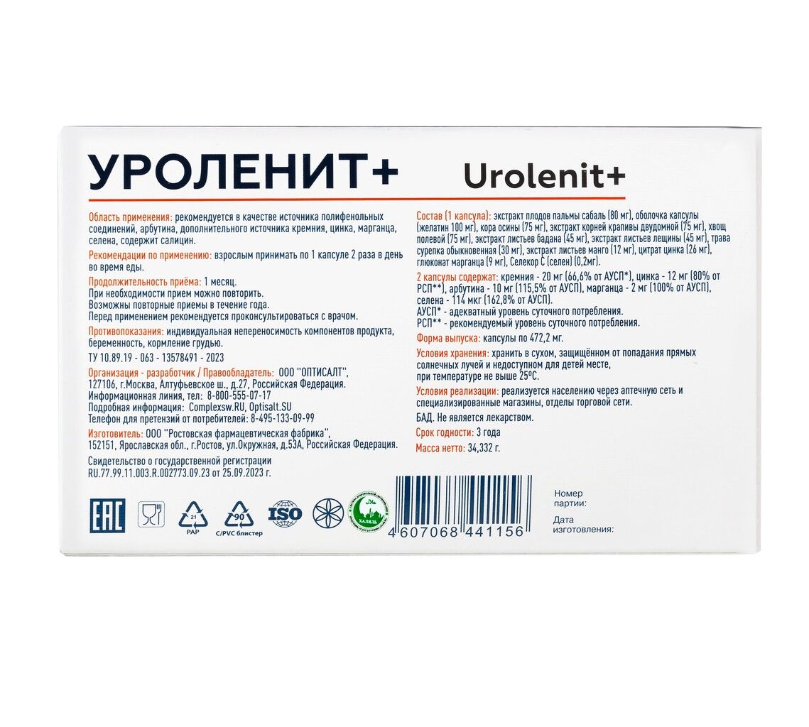 Уникально подобранная композиция из порошка и экстрактов различных частей растений, которые благотворно влияют на мочеполовую систему мужчин и женщин, компоненты обладают противовоспалительным, противомикробным и противопаразитарным действием. А высокое содержание арбутина позволяет применять его в комплексной терапии острых и хронических заболеваний мочеполовой системы